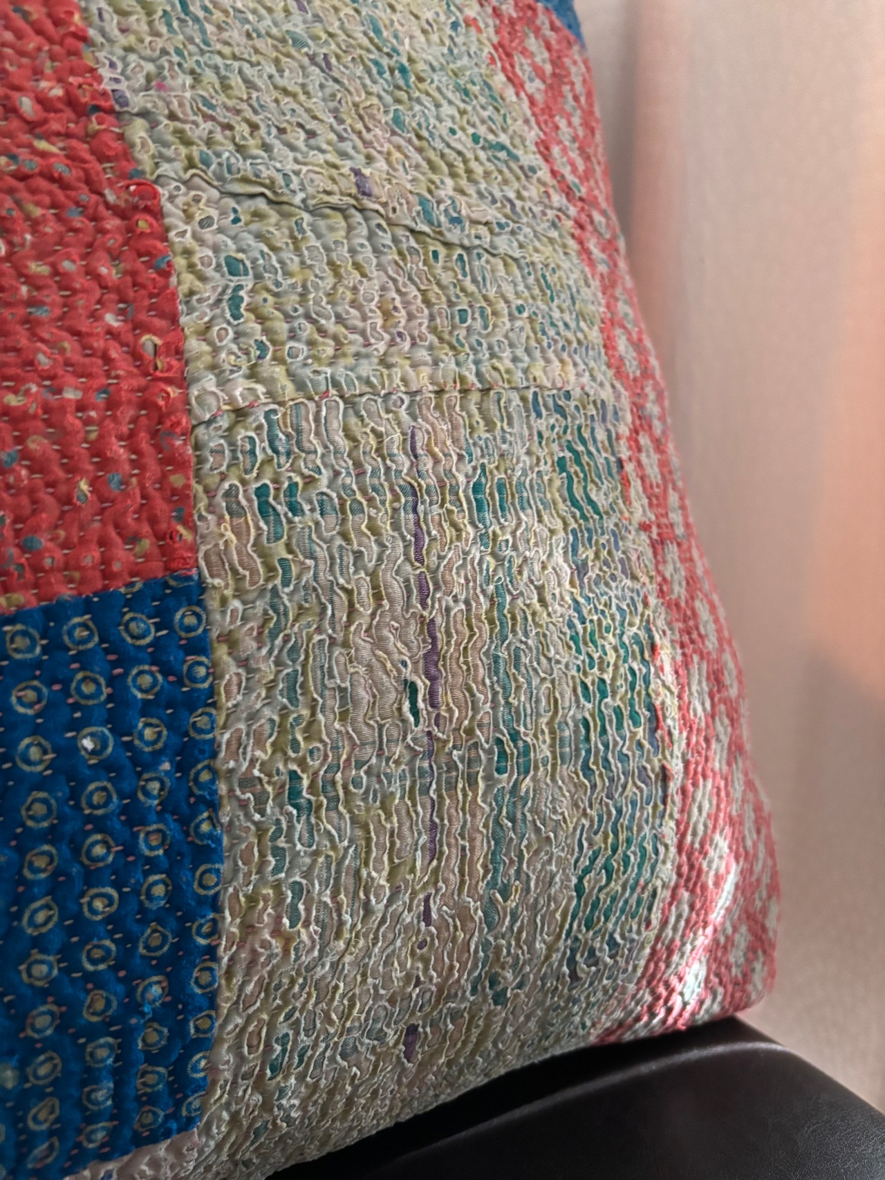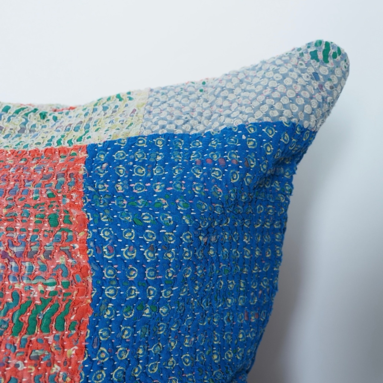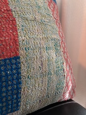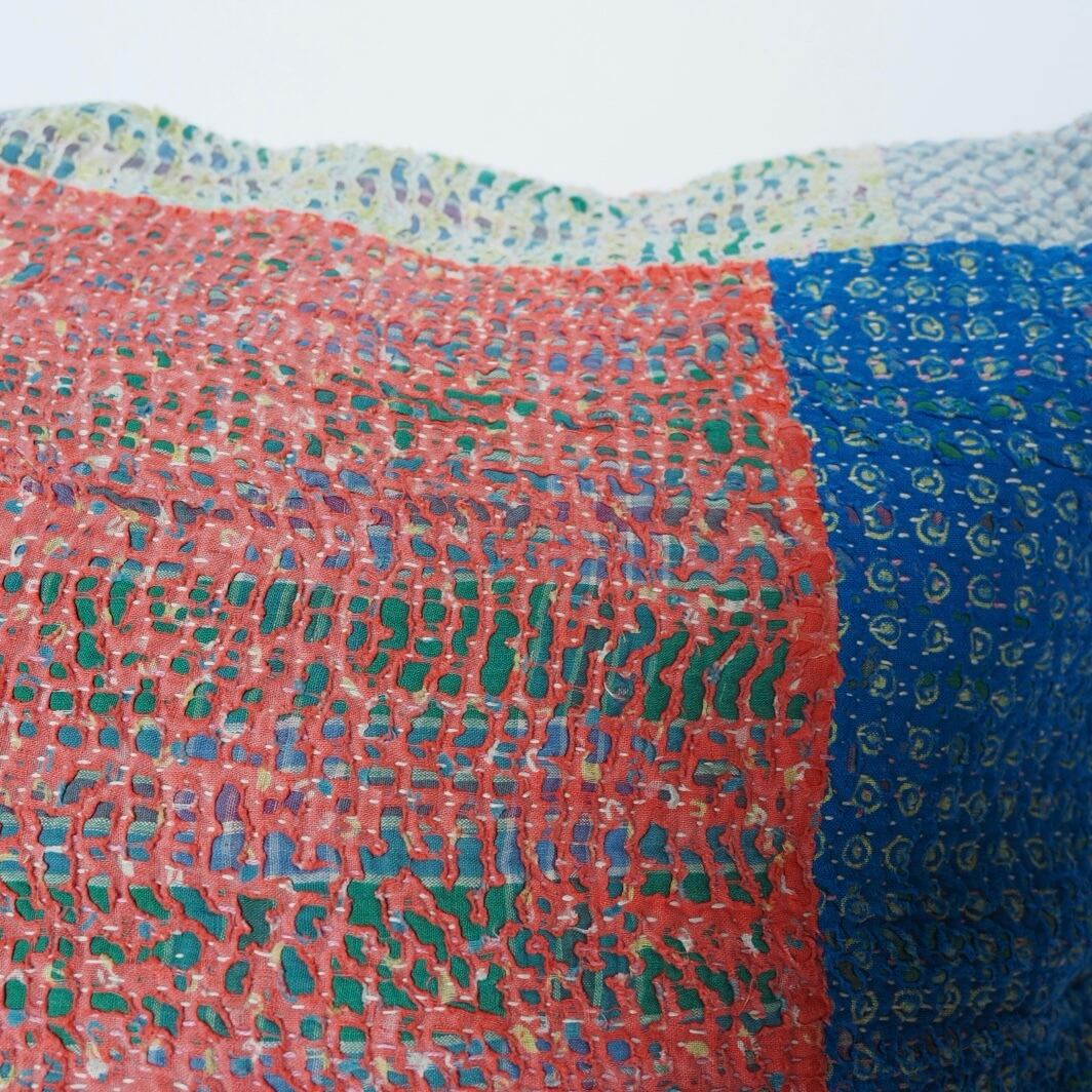 ヴィンテージのカンタキルトにはシミや色褪せ、傷みが見られますがそれもまたこの布の個性としてお楽しみ頂けると幸いです。糸の飛び出しがある場合はお好みに合わせてカットしてご使用ください。