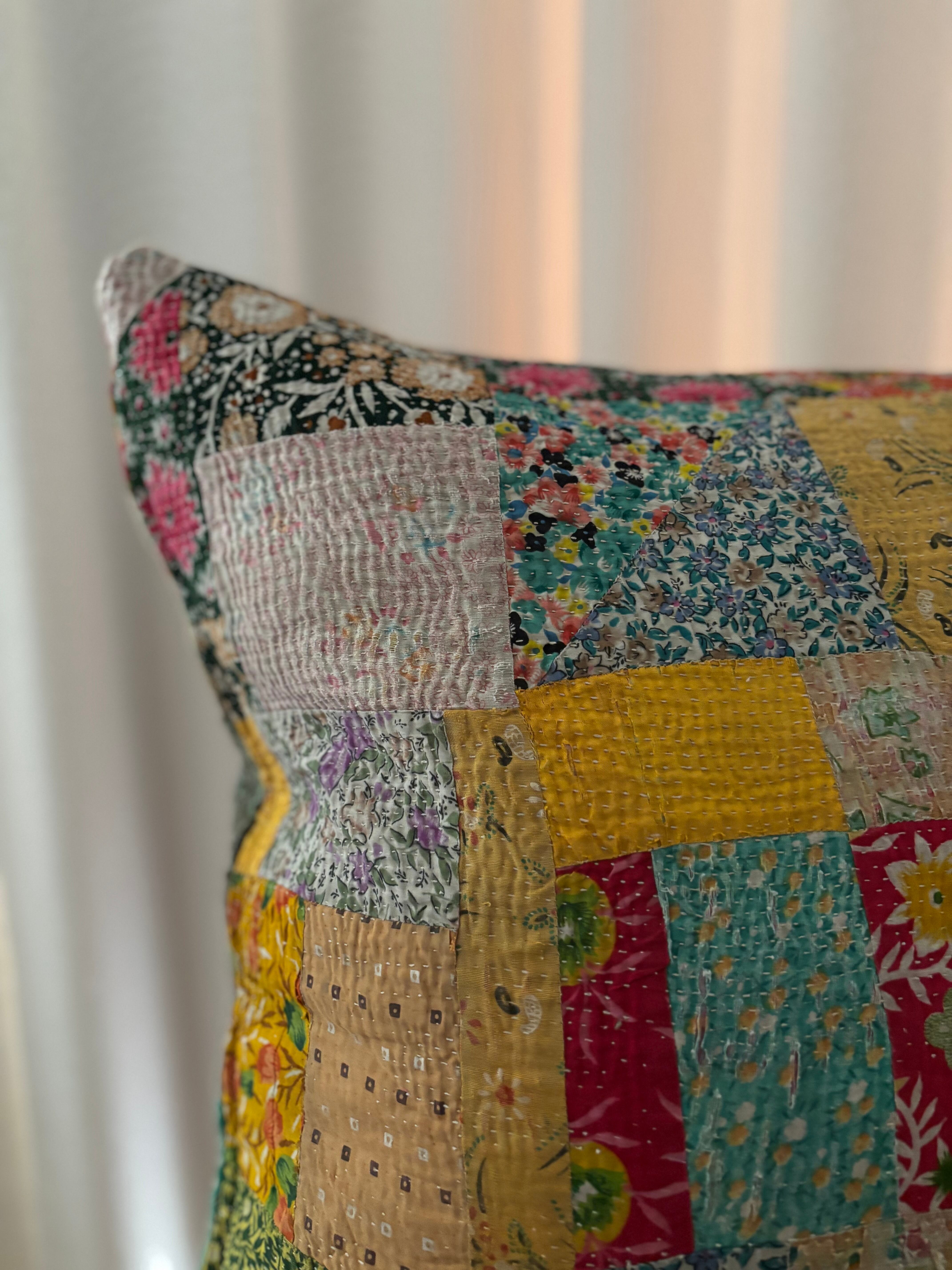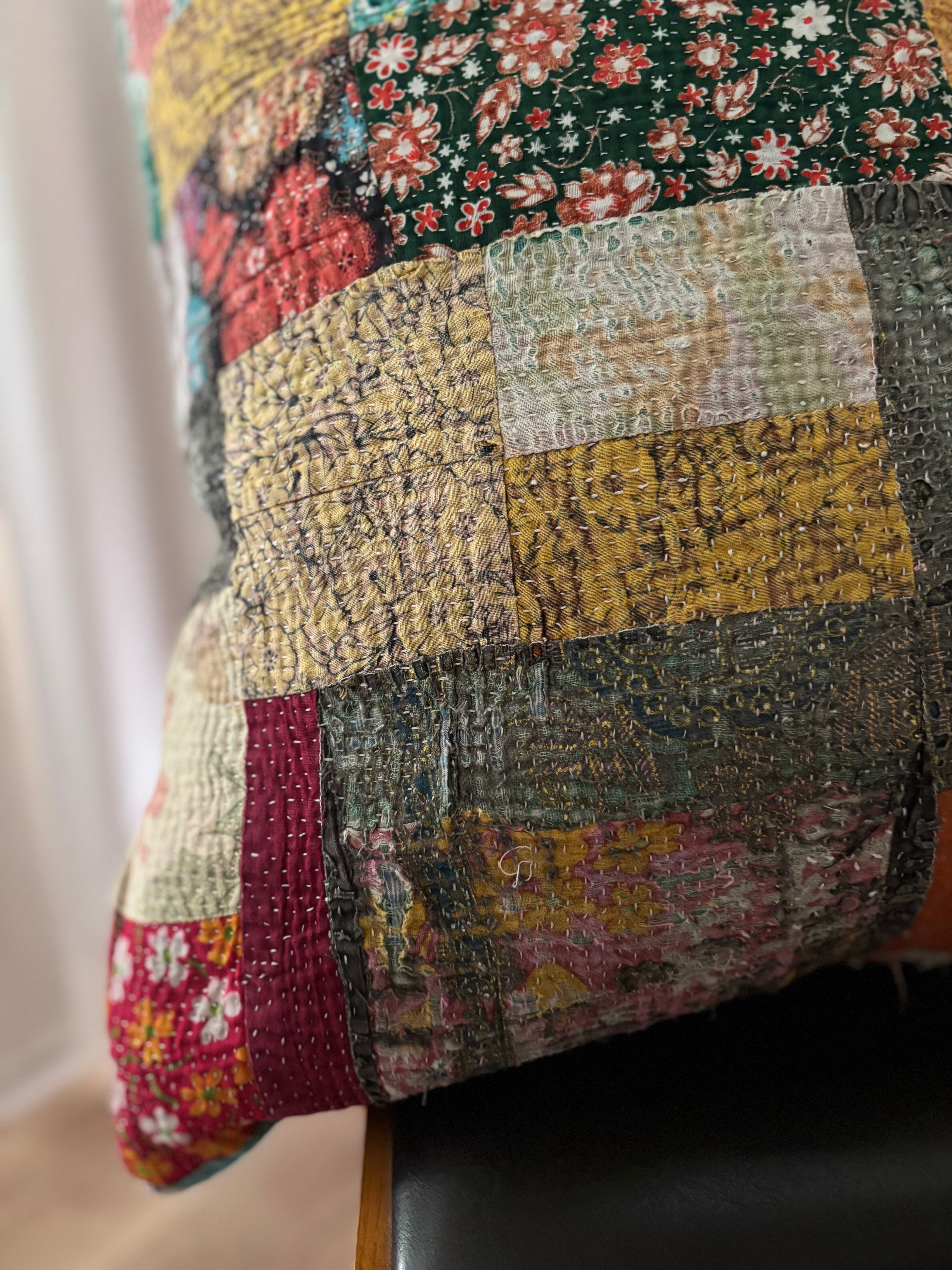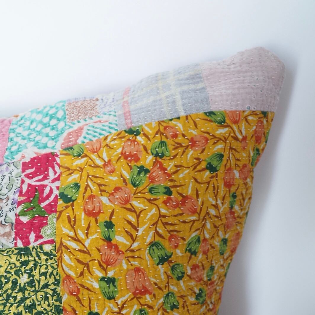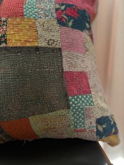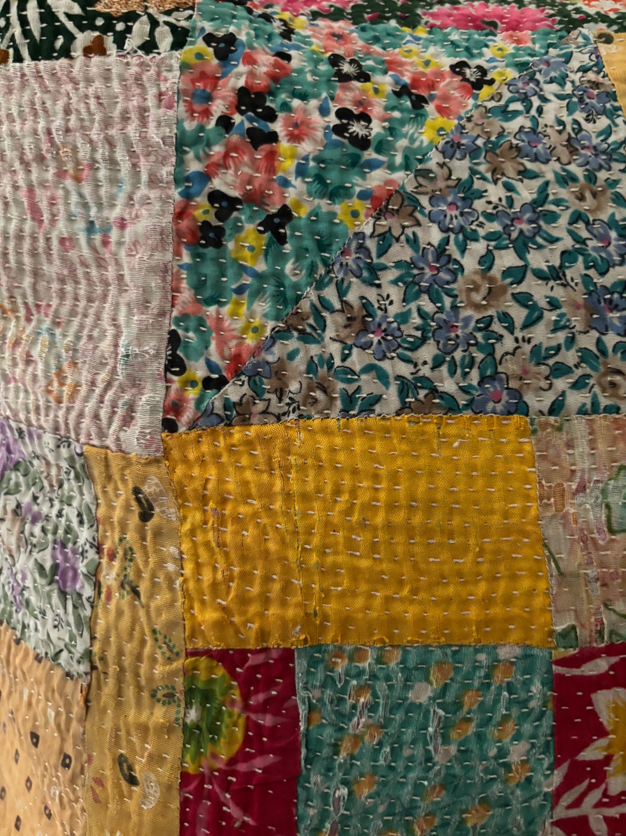 ヴィンテージのカンタキルトにはシミや色褪せ、傷みが見られますがそれもまたこの布の個性としてお楽しみ頂けると幸いです。糸の飛び出しがある場合はお好みに合わせてカットしてご使用ください。