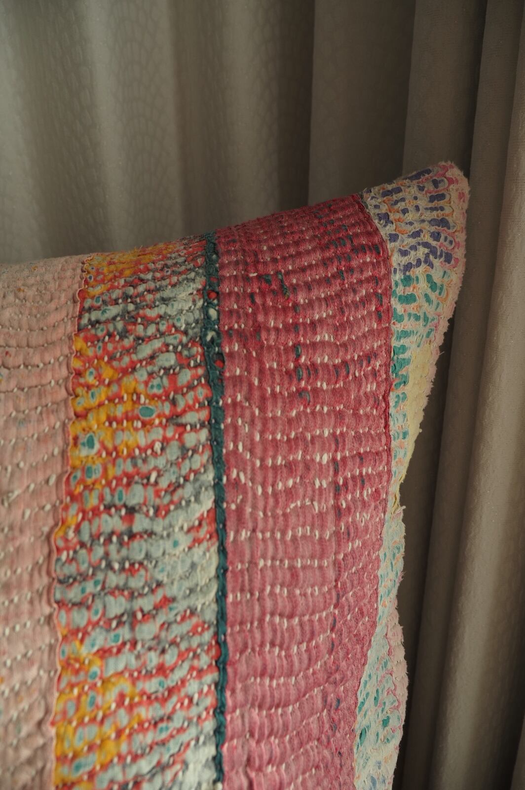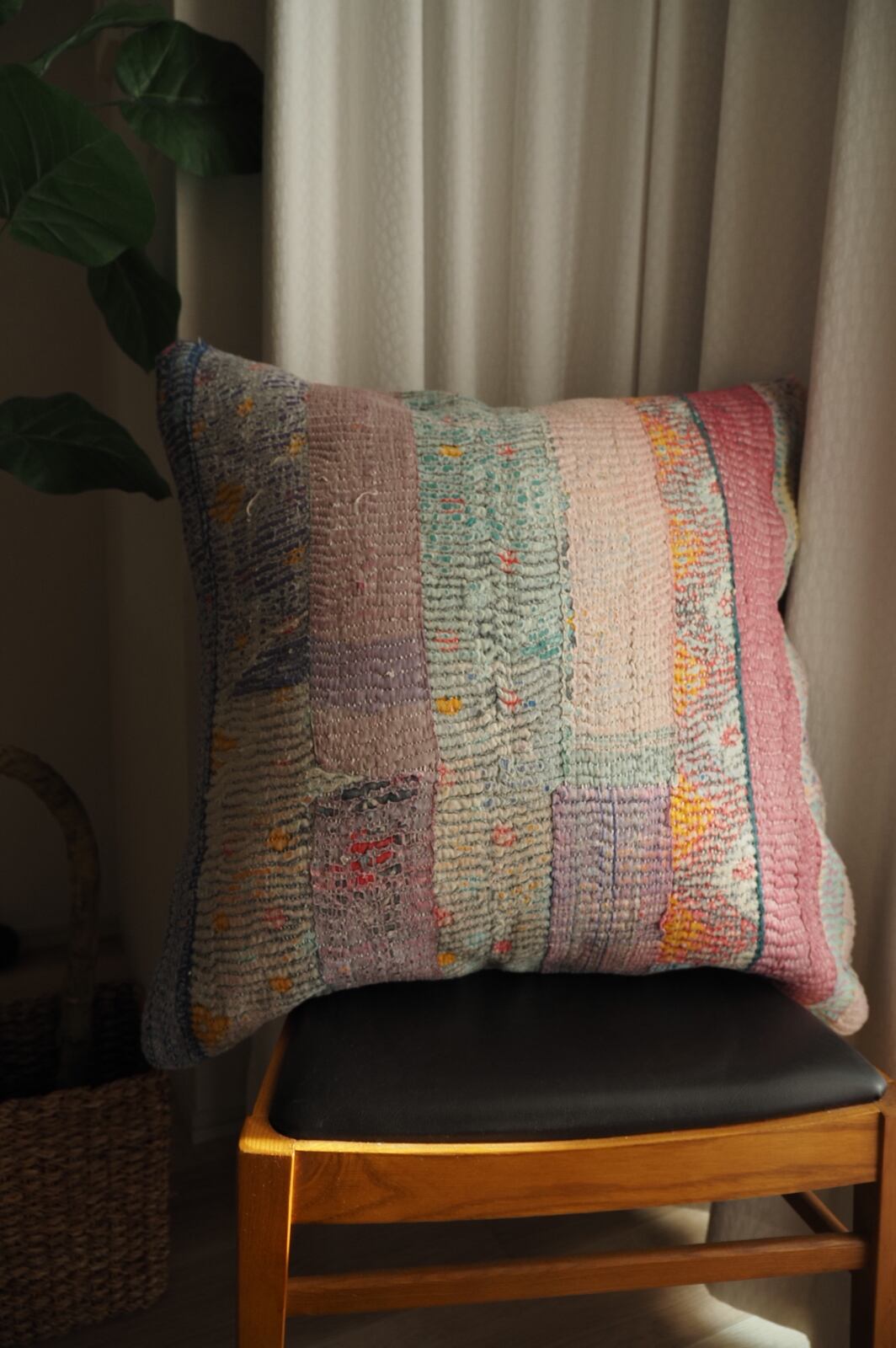 夜空に咲き誇るお花がちりばめられカンタキルトから生まれたクッション。擦れも美しく何層もある生地のグラデーションは華やかでキュート。