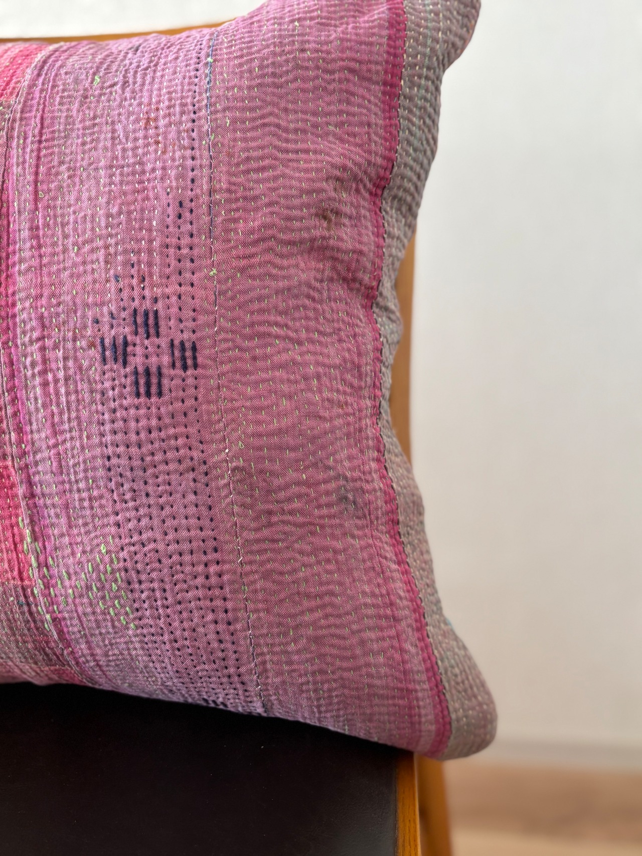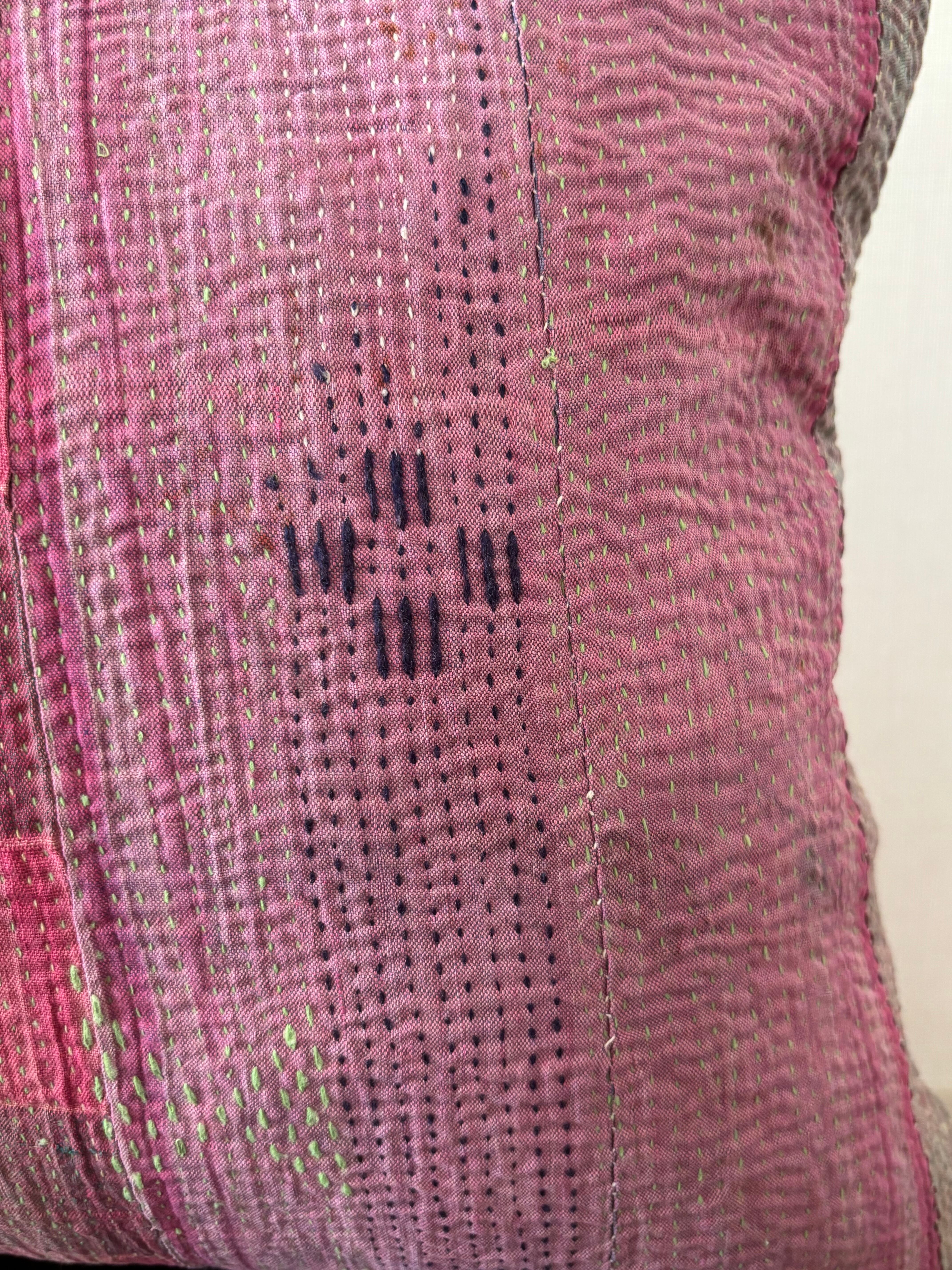 ヴィンテージのカンタキルトにはシミや色褪せ、傷みが見られますがそれもまたこの布の個性としてお楽しみ頂けると幸いです。糸の飛び出しがある場合はお好みに合わせてカットしてご使用ください。