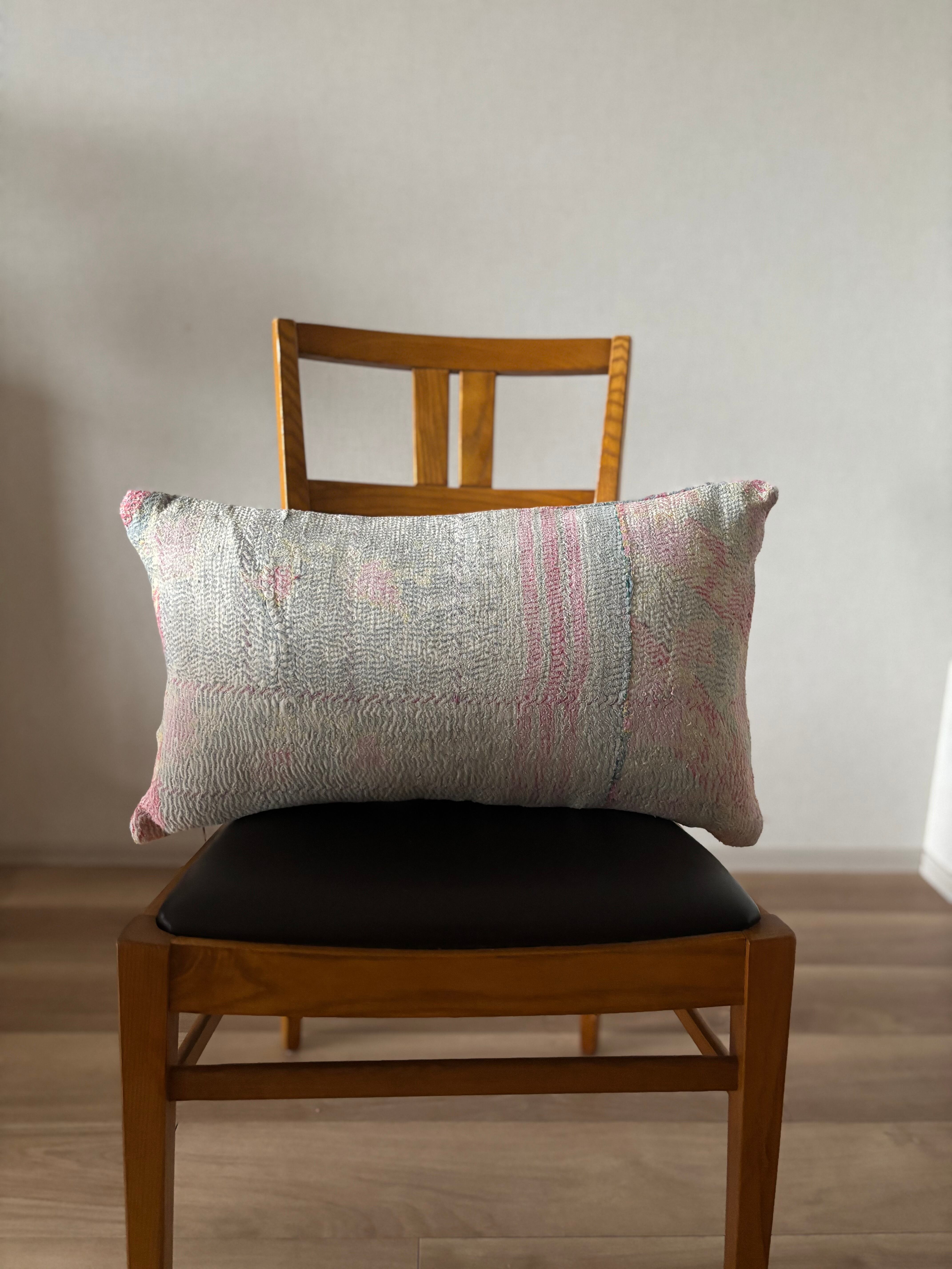 ヴィンテージのカンタキルトにはシミや色褪せ、傷みが見られますがそれもまたこの布の個性としてお楽しみ頂けると幸いです。糸の飛び出しがある場合はお好みに合わせてカットしてご使用ください。